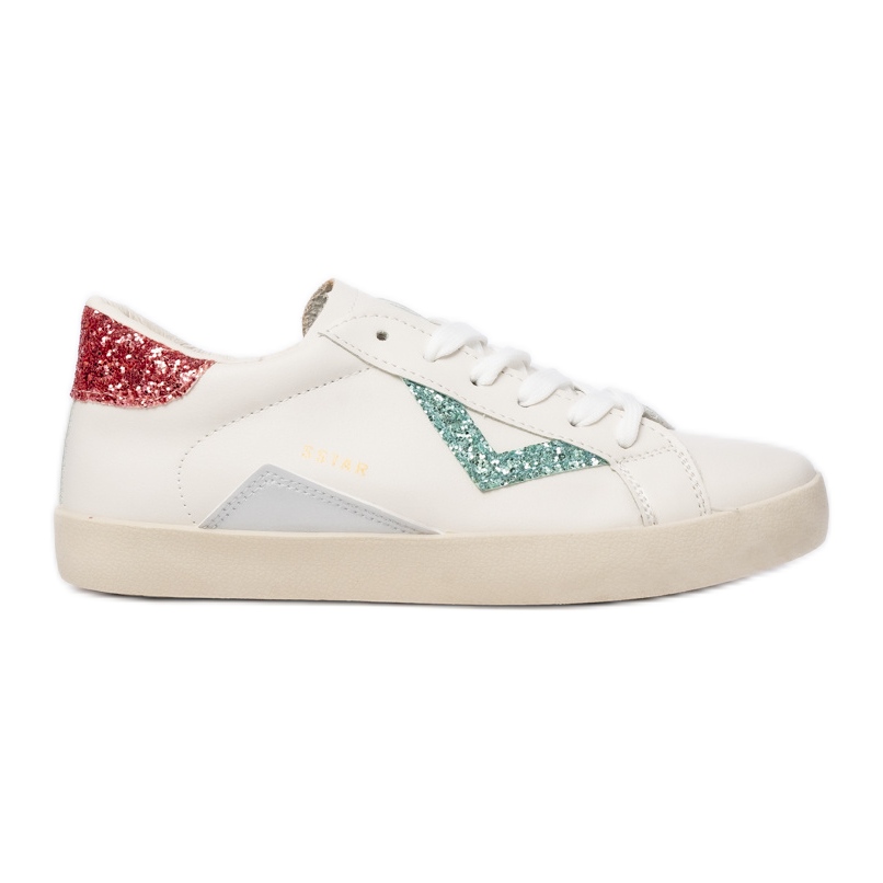 These low sneakers are perfect for everyday use, both in work sets and for meetings with friends. The colors in combination with glitter inserts give them a youthful character and makes them a great complement to any stylization.