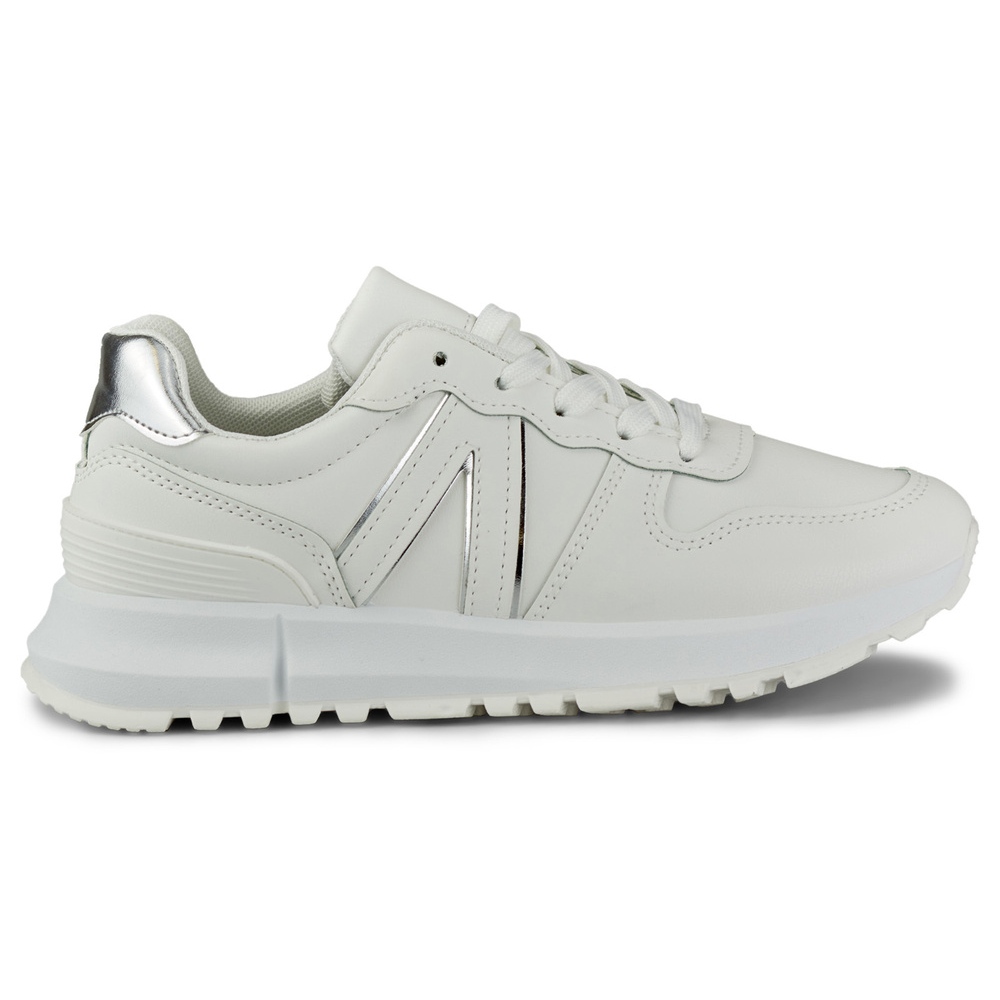 Details: Women's white sneakers with silver trim