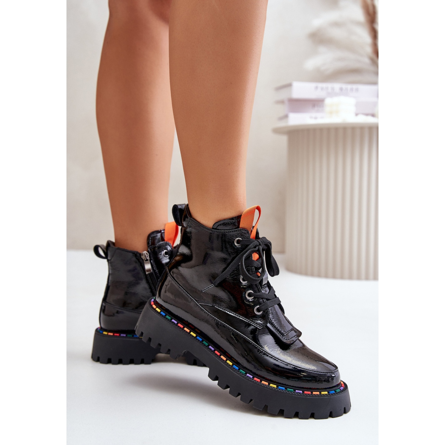 We present Model 24BT04-8134 Workers in black-unique boots that will be a perfect complement to any women's wardrobe. Made of high quality natural leather, these stylish shoes combine elegance and originality, thanks to colorful accents that give them a unique character.