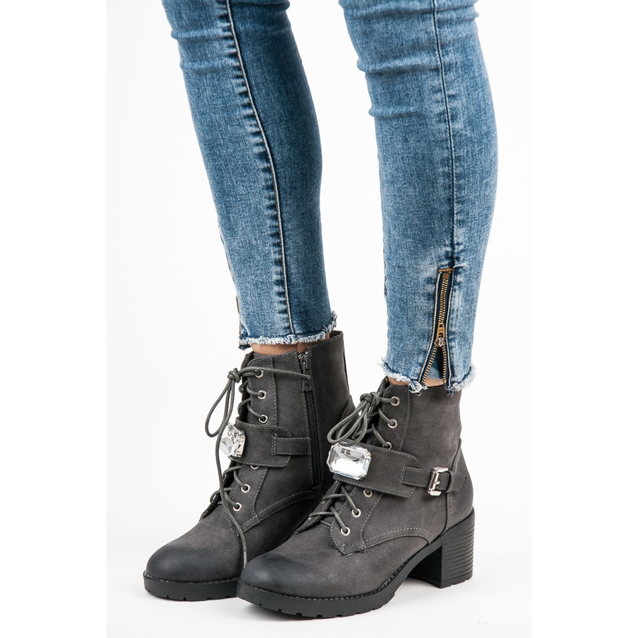 We present the worker boots in an elegant shade of grey from the renowned manufacturer Kylie. These women's ankle boots combine modern design with functionality, making them an ideal choice for colder days. Made of high-quality ecological leather, they provide comfort and are environmentally friendly.