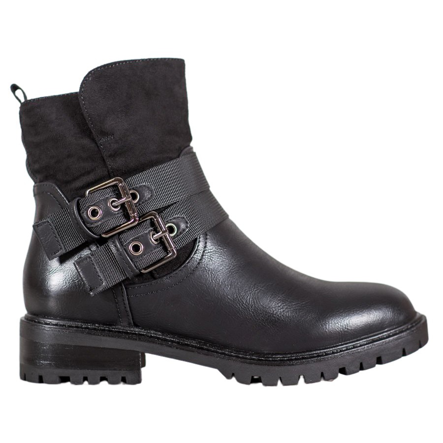 The solid sole with tread provides stability and comfort when walking, and the round toe adds a classic look to the whole. Metal buckles attract attention, giving the footwear an original, slightly rock style. The buckle and zipper fastening make it easy to put on and take off, and the built-in, stiffened heel guarantees additional support for the foot.