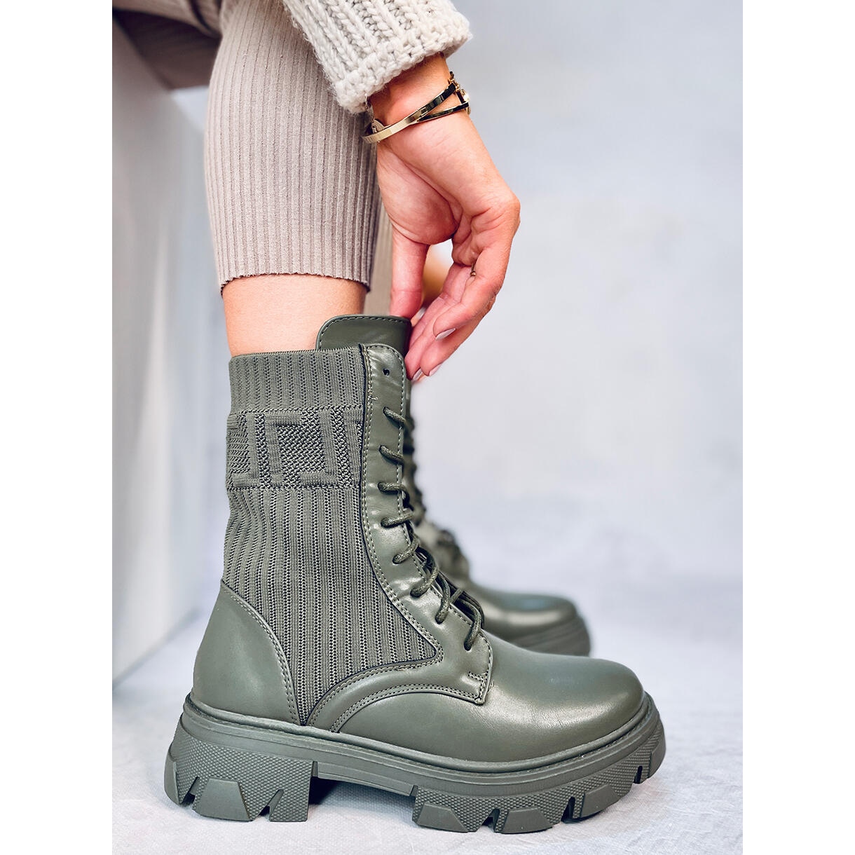 Modern, comfortable and full of character-these green workers are a must-have for ladies who focus on a fashionable city look. The flexible, "sock" upper adapts well to the calf, and the thick, 4 cm sole gives the figure lightness and increases the comfort of wearing all day. Perfect for everyday stylizations - from jeans to airy dresses combined with a long coat.