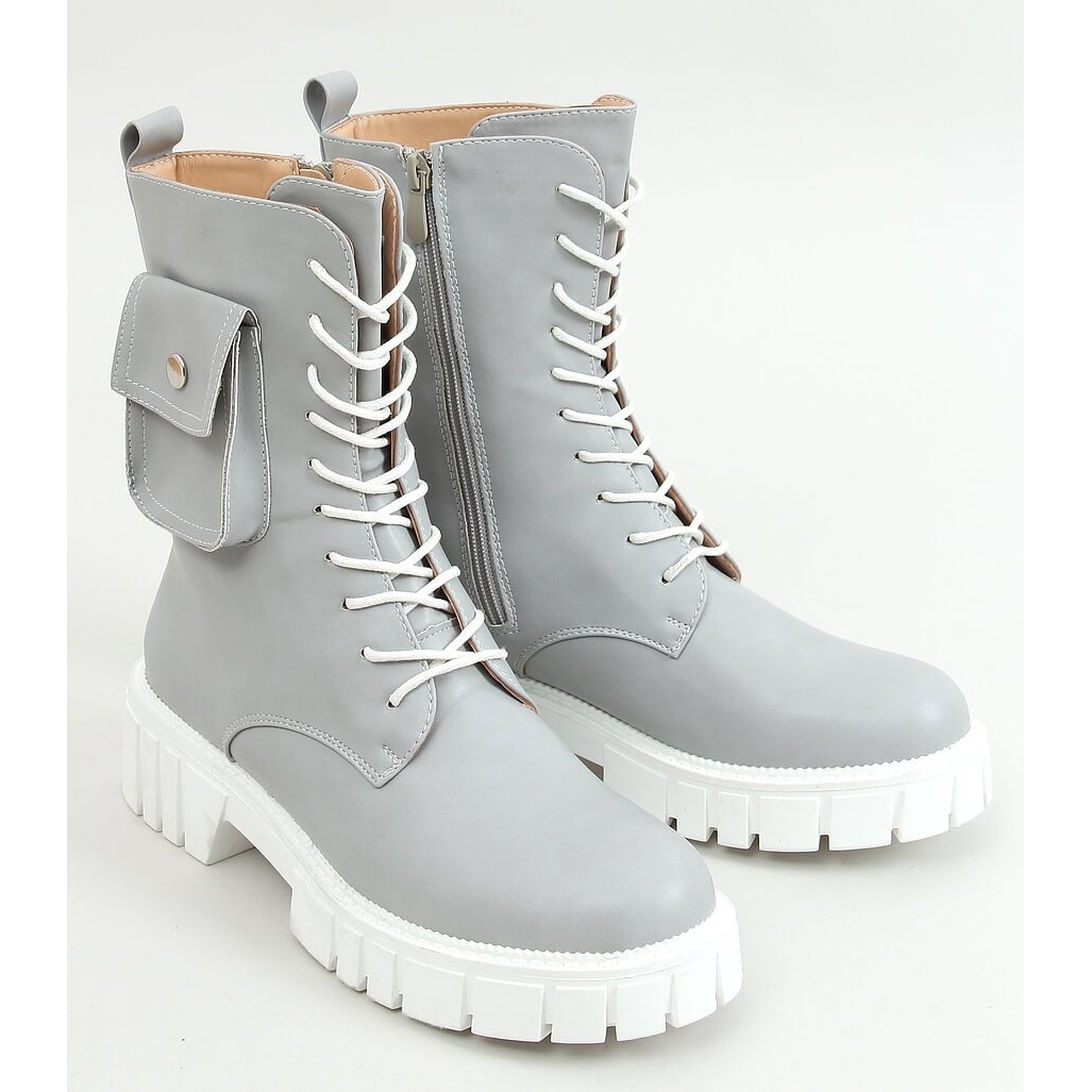 Maruna Workers with a pouch in the shade L.GREY are a great choice for women who value both a fashionable look and comfort. These lace-up ankle boots with a wide, 5 cm heel combine a classic style with original details that distinguish them from other models.