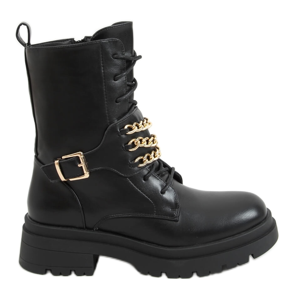 Discover a new dimension of comfort and style with PA1 black baggies, which will become an inseparable element of your wardrobe! Women's ankle boots with a wide 5 cm heel combine simplicity of design with modern accents, such as gold chains placed at the front. This is the perfect model for women who value not only fashion, but also practicality.