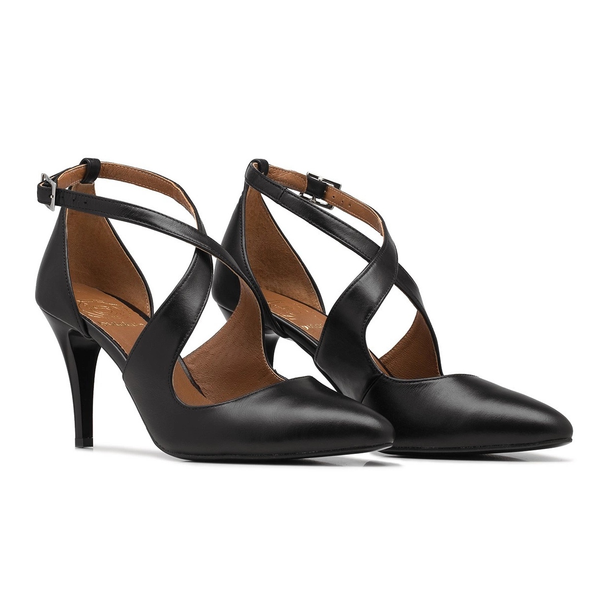 Details: BUTDAM Xena black pointed toe dance heels with straps