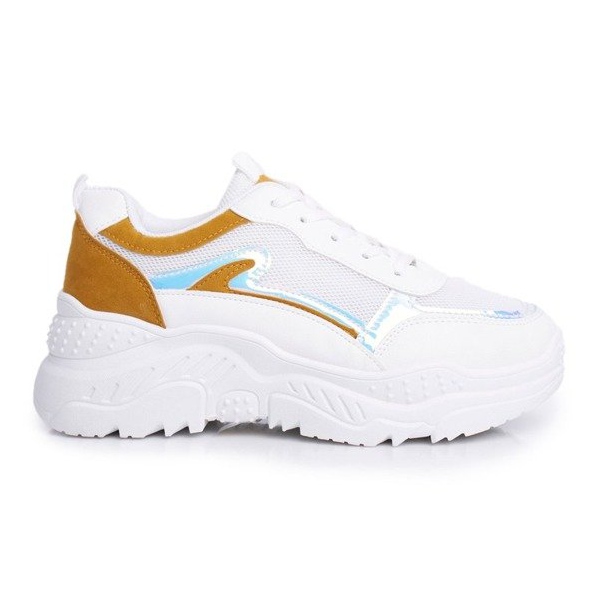 We present the unique yellow and white women's sports shoes BUGO 878, which combine modern design with comfort and functionality. These sneakers are distinguished by an original combination of white, yellow and subtle gold accents, thanks to which they will perfectly fit into any styling, both for training and everyday.