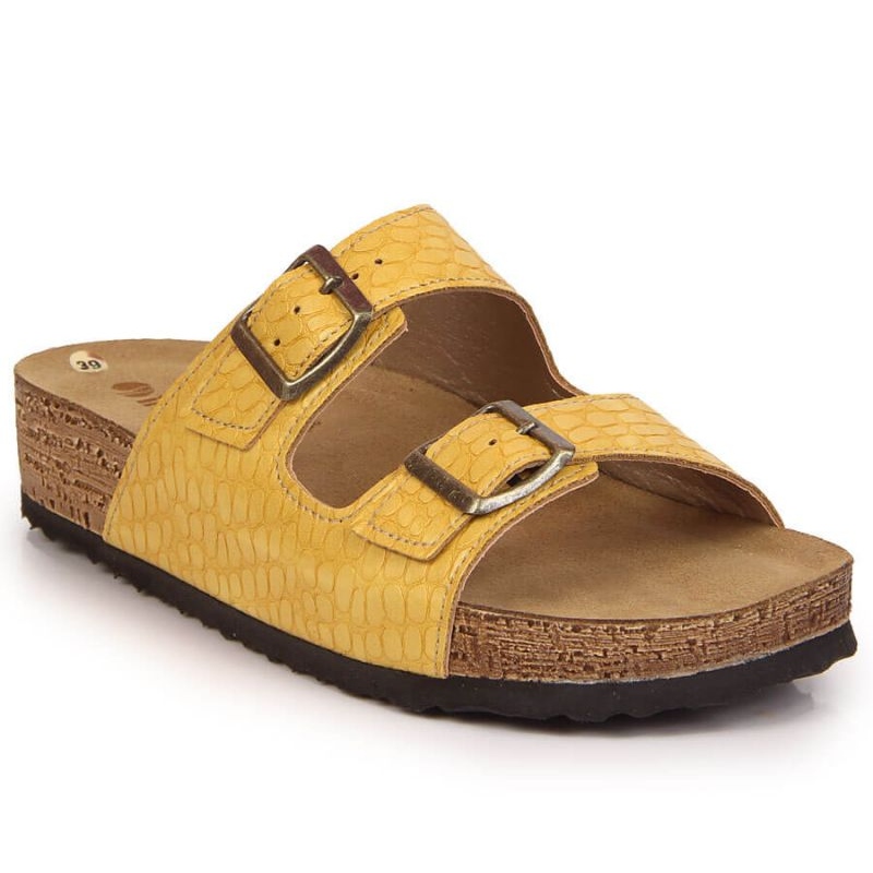 Details: Yellow Inblu W ARC15 slippers with buckles