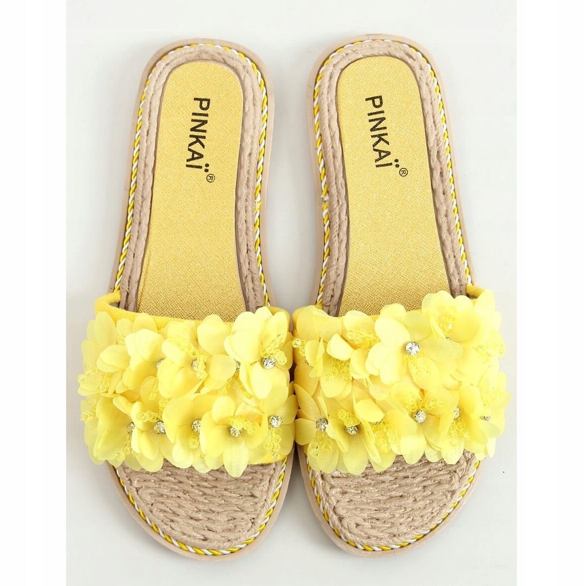 Delight in the summer in yellow LS003 Yellow flower flip-flops! These charming women's flip-flops with a flexible sole are the perfect choice for everyday styling. Made of ecological suede, they combine comfort with a fashionable design. Their unique character is emphasized by beautiful flowers decorated with shiny stones, which give them a unique charm, making them need no other decorations.