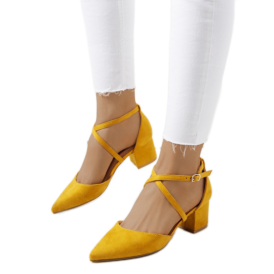 Discover elegance and comfort with the yellow Terra pumps on the block heel. These unique shoes combine simplicity with a beautiful finish that delights. The low 5 cm heel guarantees comfort and stability, so you can enjoy them all day long.
