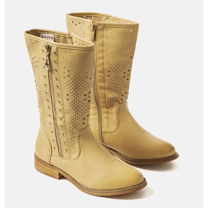 Delicate, openwork boots in a beige shade are a great choice for a girl who likes comfort combined with a fashionable look. The upper made of ecological leather with a decorative openwork pattern looks very elegant and at the same time provides better ventilation - that's why the shoes are not insulated and will work best in the spring season.