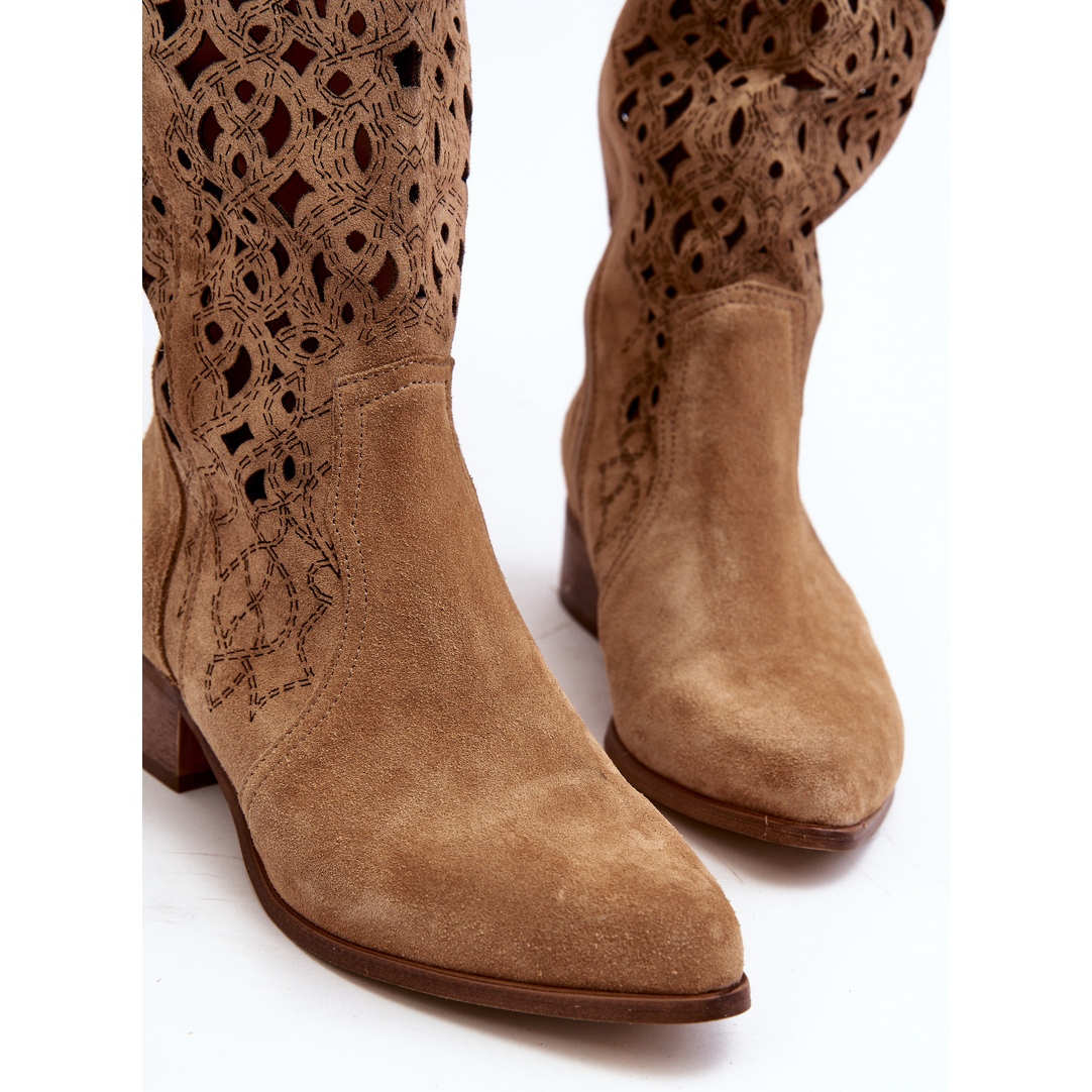 Zazoo Zazoo 3403 Women's Openwork Boots On Low Heels, Beige