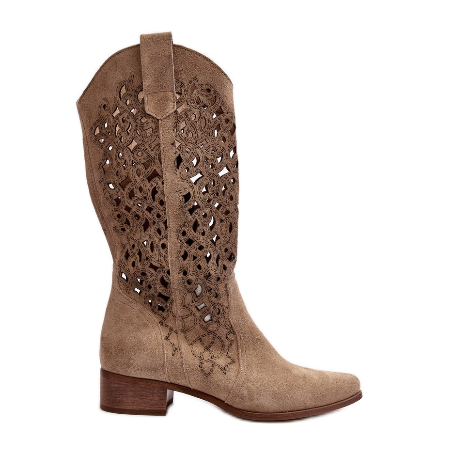 Zazoo Zazoo 3403 Women's Openwork Boots On Low Heels Light Beige