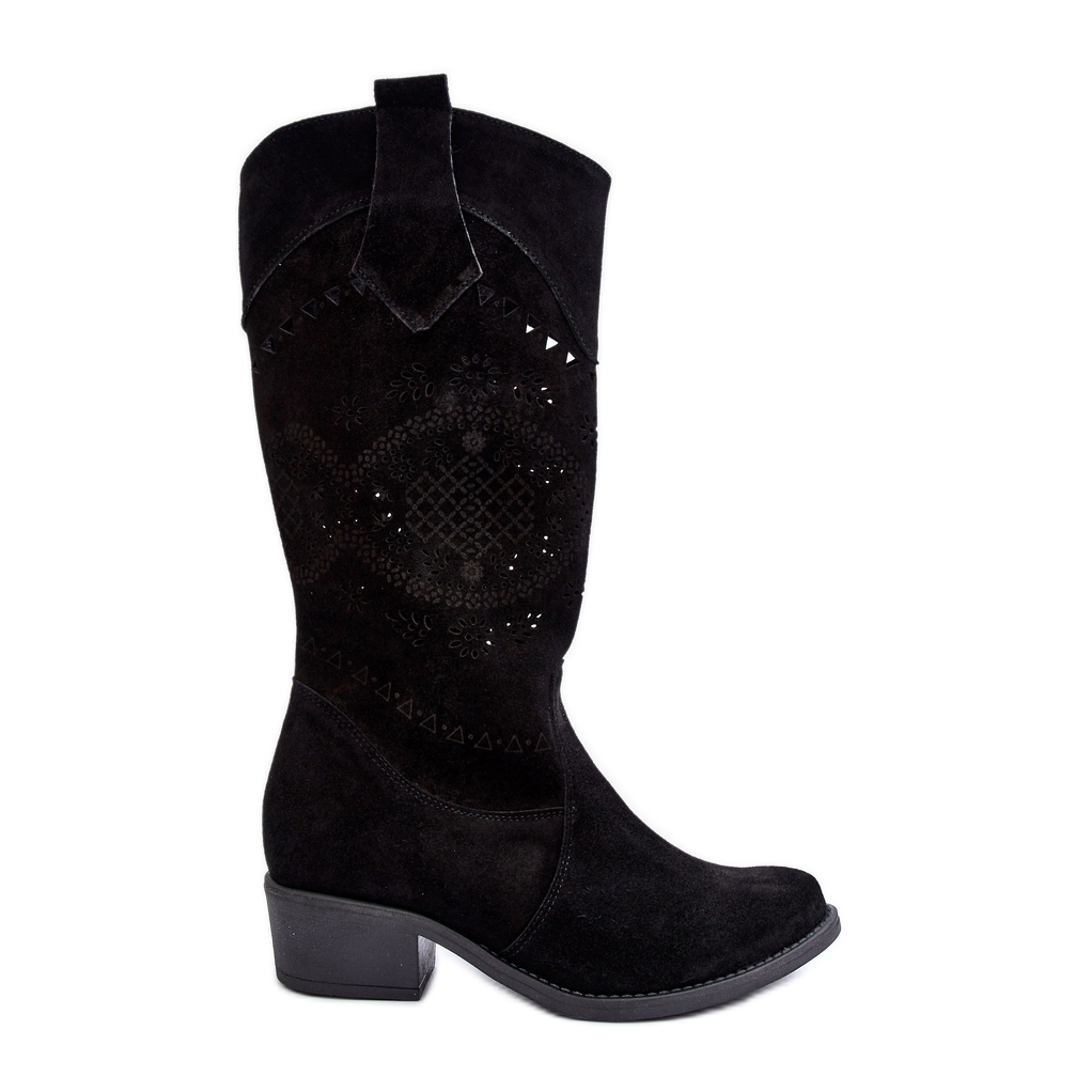 Zazoo 4043 Suede Openwork High Heel Boots, black, are a timeless choice for every woman who values elegance, comfort and the highest quality of workmanship. Thanks to their unique design, these shoes fit perfectly into spring styles, adding charm and a unique character.