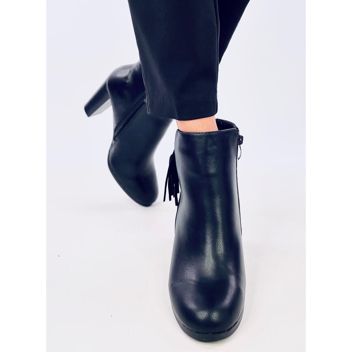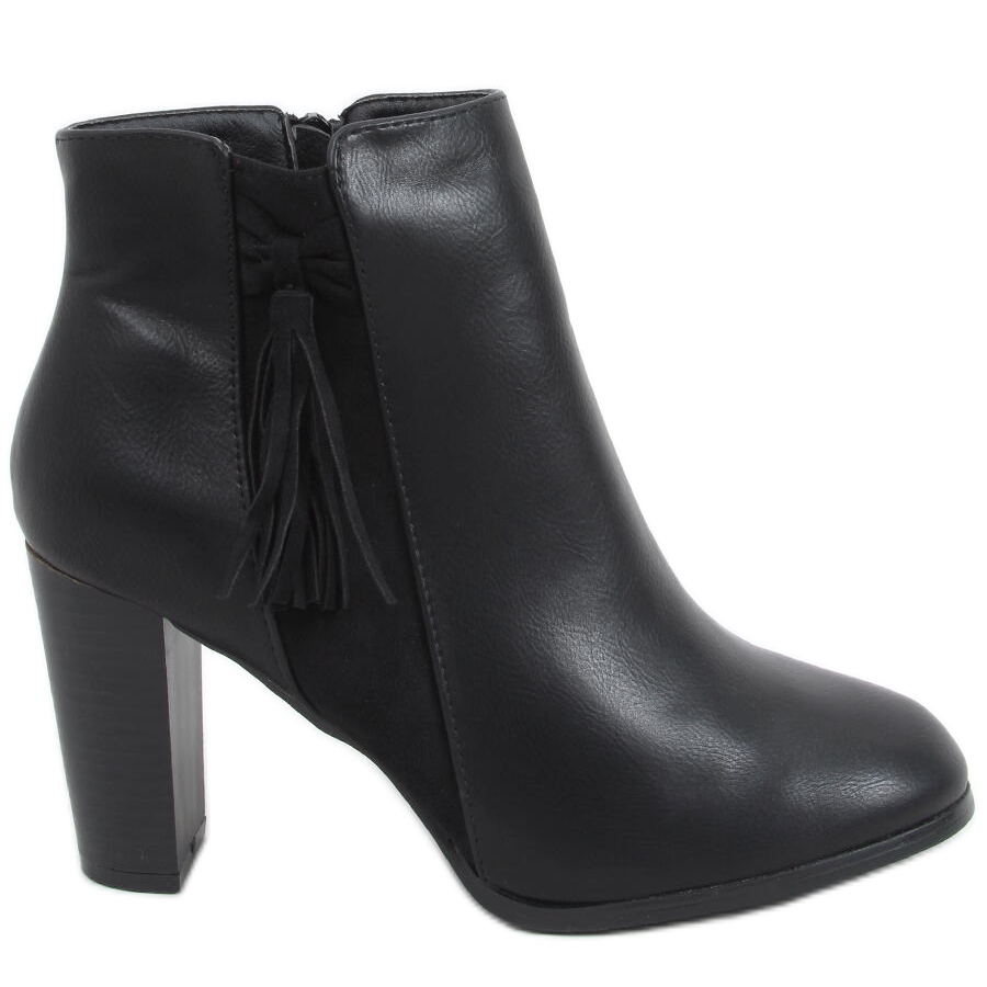 Classic black boots on a 8.5 cm high post, which subtly lengthen the legs and add a feminine character to the figure. They are distinguished by a delicate bow with fringed placed on the side of the upper, which gives them a unique, fashion accent. Made of permanent ecological leather with a tasteful eco suede insert - a combination that works well every day, and for more elegant outputs.